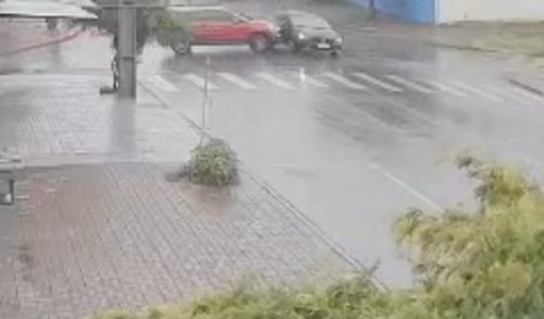 Embaixo de chuva, carros se envolvem em colisão no Santa Cruz; Veja o vídeo