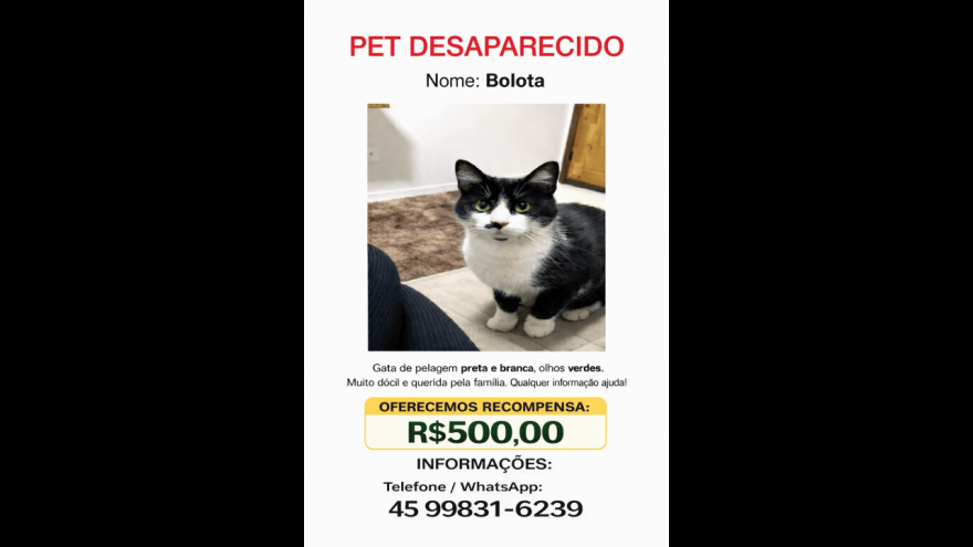 Quem encontrar ou tiver informações, pode entrar em contato com o número (45) 99831-6239....