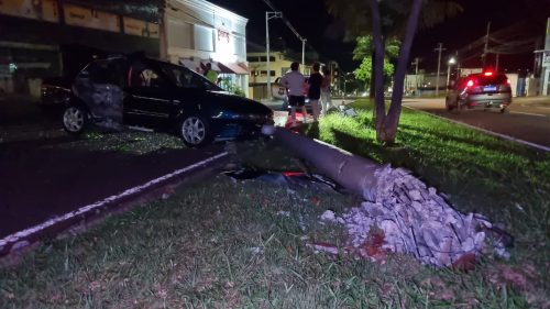 Um veículo Fiat Marea colidiu contra um poste de iluminação pública perto da esquina com a Rua João de Mattos.