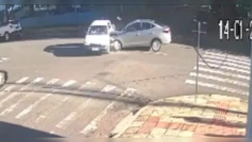 Uma câmera de segurança registrou o exato momento de um acidente de trânsito ocorrido na manhã desta quarta-feira (14) na região central de Maringá. O incidente aconteceu na Rua Santos Dumont, no cruzamento com a Rua Pombal, e envolveu dois veículos. A colisão resultou na invasão de uma residência por um dos carros e deixou uma criança de dois anos ferida.