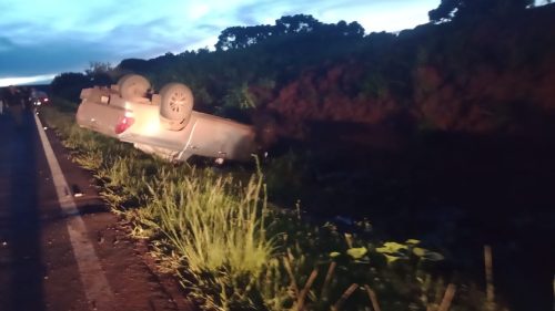 Caminhonete Hilux capota após colisão contra Monza em Renascença