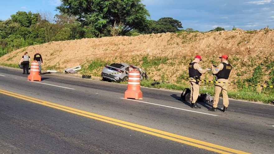 Segundo informações apuradas no local, o Nivus atingiu a traseira do caminhão em um trecho de descida da rodovia. Com o impacto, o veículo capotou e só parou em um barranco às margens da pista.