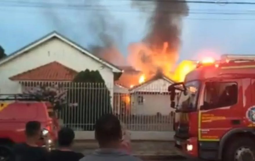Um incêndio mobilizou equipes do Corpo de Bombeiros na Rua Rio Grande do Sul, no Jardim Apucarana, em Apucarana (PR), no início da noite desta segunda-feira (26).