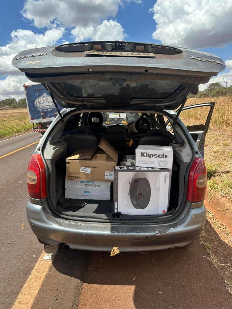 Durante as buscas no interior do veículo, os policiais encontraram sete volumes de eletrônicos de origem paraguaia, caracterizando o crime de descaminho. Além das mercadorias, um veículo também foi apreendido na operação.