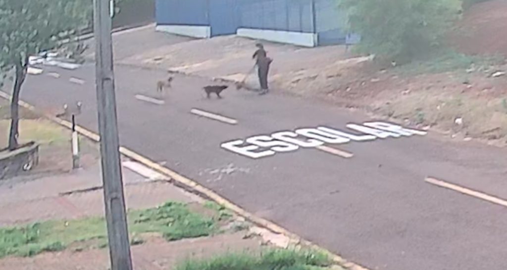 A reportagem recebeu vídeos de monitoramento que mostram cães avançando contra uma pessoa em um patinete. Em outro vídeo, os cães demonstram hostilidade ao atacar outros animais.