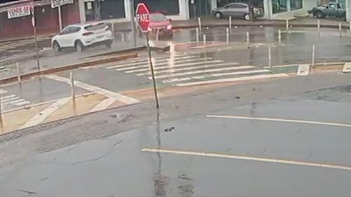 Câmeras de segurança registraram imagens de outro ângulo do acidente entre uma Tucson e um Onix ocorrido no cruzamento da Avenida Piquiri e Rua Paraná na tarde desta terça-feira (3).
