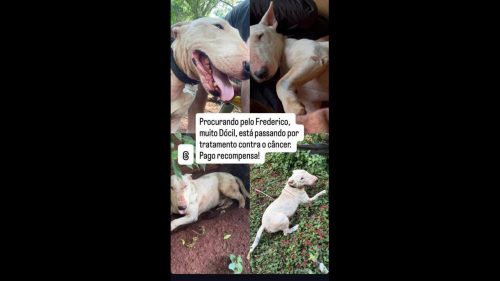 O animal atende pelo nome de Frederico (bullterrier, castrado).