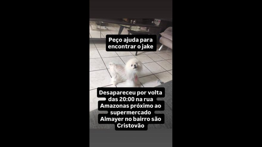 Cachorro Jake desapareceu no bairro São Cristóvão