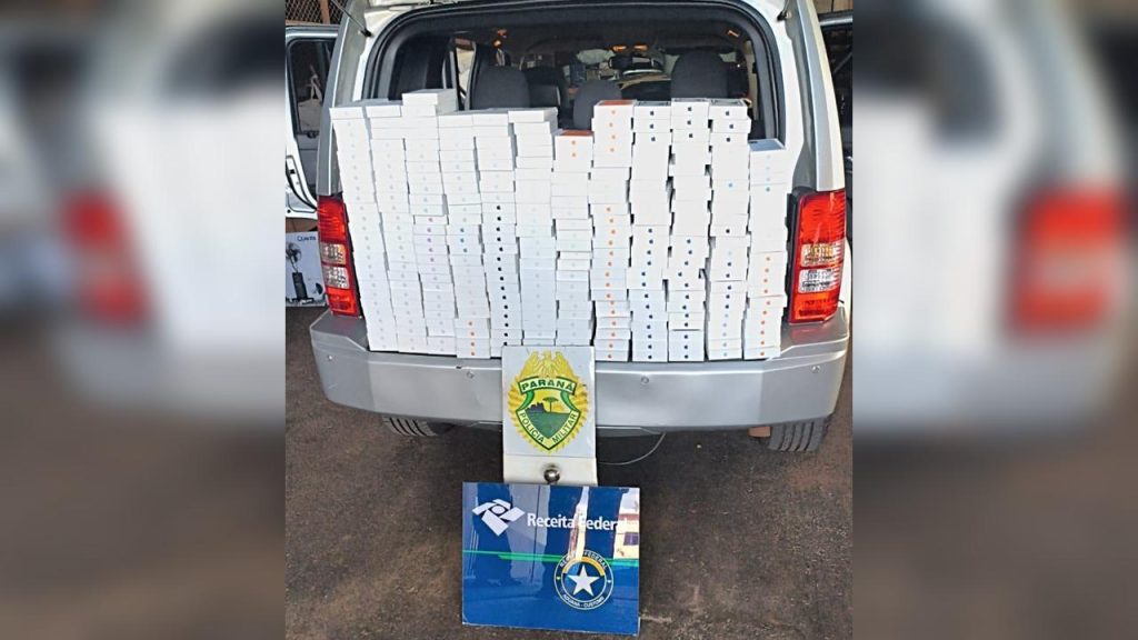 Uma ação conjunta da Polícia Militar do Paraná (PMPR) e da Receita Federal do Brasil resultou na apreensão de uma grande quantidade de aparelhos celulares de origem ilícita na tarde desta quarta-feira (04), A ocorrência foi registrada na rodovia BR-277, em Santa Tereza do Oeste.