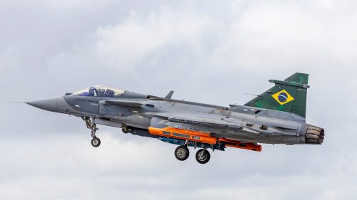 FAB e Saab concluem testes de lançamento de bombas com o F-39 Gripen
