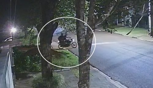 Nas gravações, foi possível identificar dois homens saindo da garagem da residência com a motocicleta. As imagens mostram os suspeitos abrindo o portão e deixando o local com o veículo por volta das 4h15, seguindo em direção à Rua Jorge Lacerda.