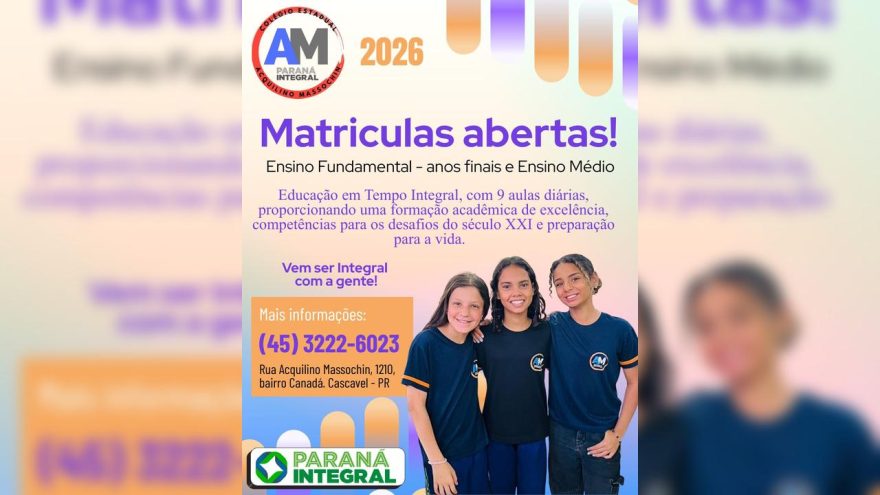 A direção do Colégio Estadual Acquilino Massochin, localizado no Bairro Canadá, em Cascavel, entrou em contato com a CGN neste domingo (8) para informar que a instituição está com vagas disponíveis para matrícula imediata.