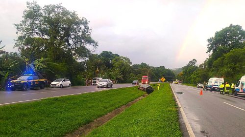 No local, um homem ficou ferido e uma mulher morreu após ser atendida por profissionais da concessionária responsável pelo trecho. O condutor do automóvel e outra passageira não sofreram ferimentos.