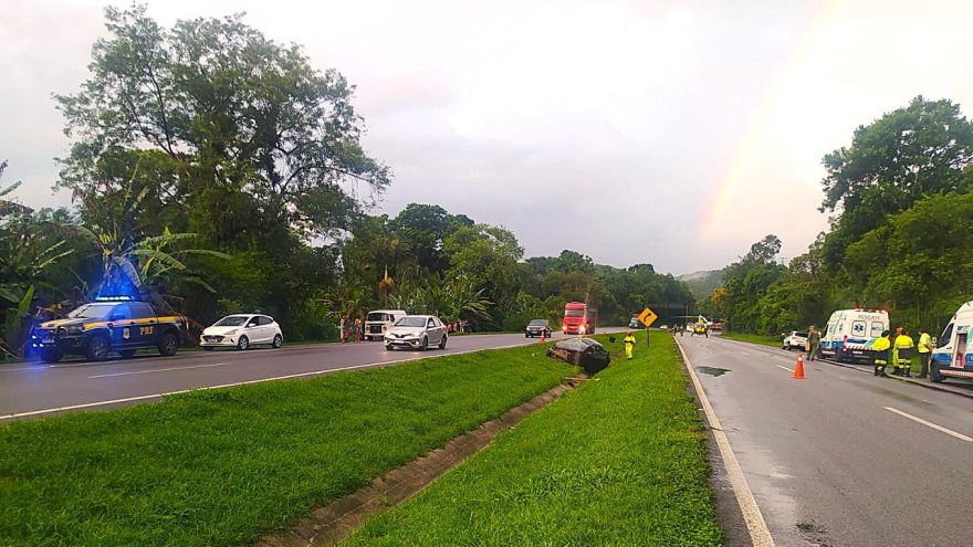 De acordo com informações da Polícia Rodoviária Federal, o sinistro ocorreu no km 28 da rodovia, no sentido Curitiba. O veículo envolvido foi um Nissan Versa, de cor preta, ocupado por quatro pessoas.