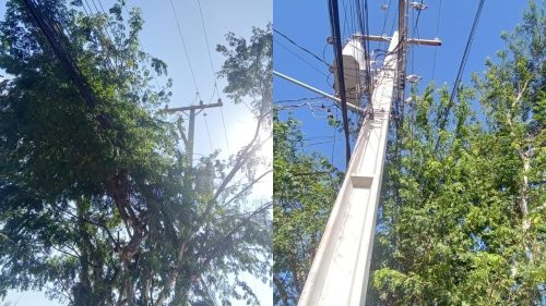 Contato de galhos de árvores na rede elétrica causa desligamento na Rua Vereador José de Oliveira