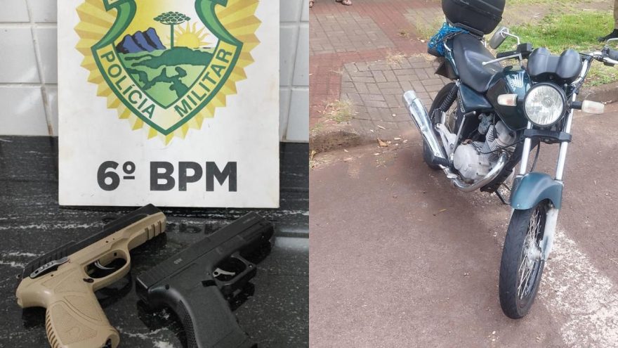 Adolescente é apreendido com simulacros de arma de fogo e motocicleta é recolhida