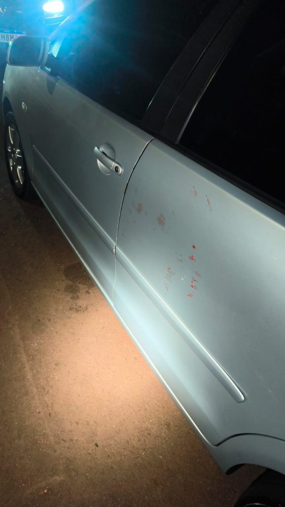 O automóvel, um Volkswagen Polo, apresentava marcas de sangue. O carro foi recolhido e encaminhado à delegacia para os procedimentos cabíveis.