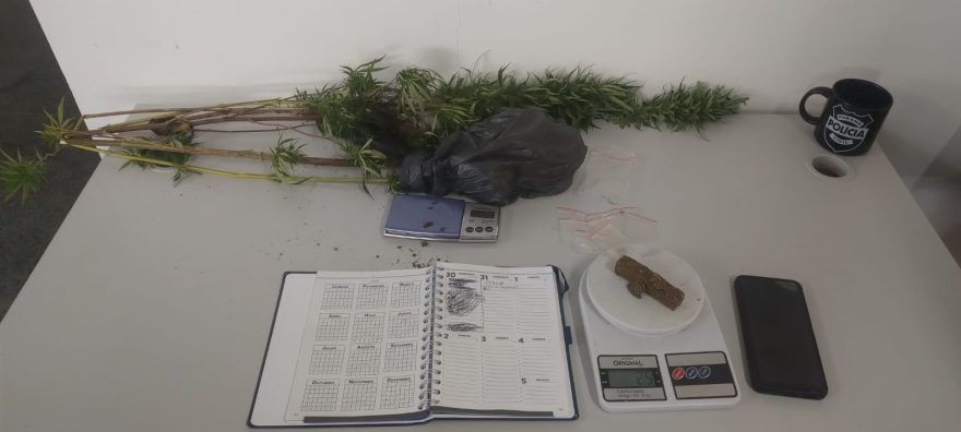 “Durante as buscas, os policiais localizaram aproximadamente 25 gramas de maconha, duas balanças de precisão, um caderno com anotações relacionadas ao tráfico de drogas, embalagens plásticas do tipo ziplock e dois aparelhos celulares”, explica.