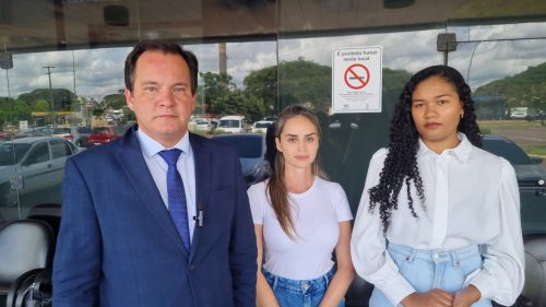 O advogado Luciano Katarinhuk compareceu no Fórum de Cascavel, onde ocorrerá a audiência, acompanhado da irmã e da viúva de Ariel.