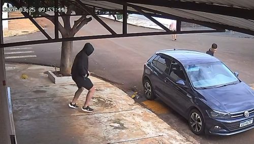 Imagens de câmeras de segurança flagraram o momento em que o neto e o amigo fugiram após o assassinato. O autor do crime foi visto entrando e saindo do bar Novo Horizonte, localizado na área central da cidade.