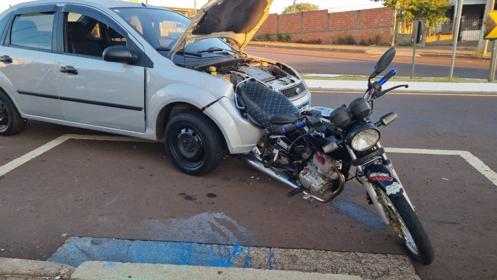A colisão aconteceu no cruzamento das ruas Adolfo Garcia e Rio Araguaia e envolveu uma motocicleta Honda CG 150 e um Ford Fiesta. O acidente foi do tipo traseira, conforme as informações apuradas no local.
