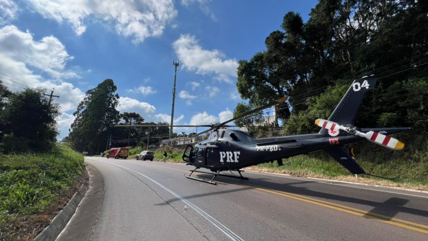 Motociclista em estado grave é transportado por helicóptero da PRF após acidente na BR-277