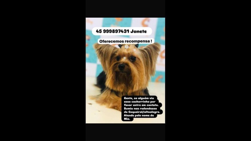Quem encontrar ou tiver informações, pode entrar em contato com o número (45) 99805-6212....