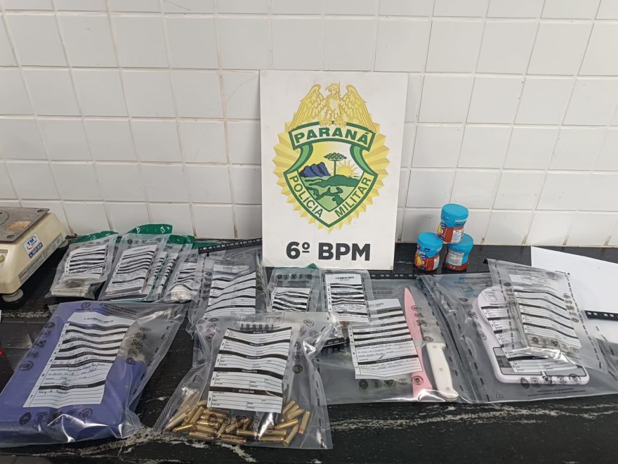 O indivíduo assumiu a prática do crime e autorizou a entrada dos agentes na residência onde foram encontrados 1,5 tablete de maconha, balança de precisão, facas, plástico e isqueiro utilizados para fracionamento. Também foram encontradas 86 munições calibre .38 e dois estojos. No veículo utilizado pelo homem também foi localizada uma porção de maconha fracionada.