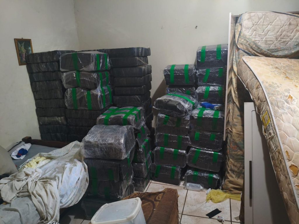 Durante as buscas, os policiais localizaram diversos pacotes de maconha escondidos em um dos quartos da residência. A droga foi pesada e totalizou 1.400 quilos.