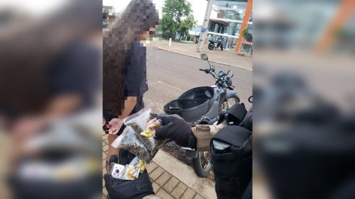 O condutor era um adolescente de 17 anos, que estava acompanhado de uma jovem de 20 anos. Na abordagem, foram encontradas porções de maconha, haxixe e ecstasy no compartimento da motocicleta. A passageira assumiu a propriedade dos entorpecentes.