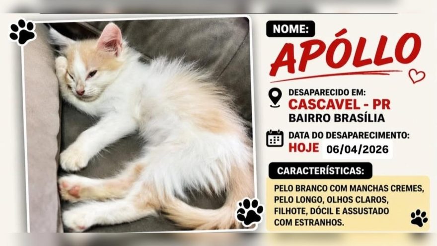 Quem encontrar ou tiver informações, pode entrar em contato com o número (45) 99975-2069.
