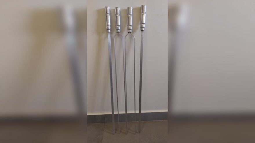 Durante a abordagem, o indivíduo foi identificado. Com ele, os policiais encontraram quatro espetos de inox, sendo dois duplos e dois simples. Conforme a PM, os objetos estariam sendo utilizados para intimidar pedestres.