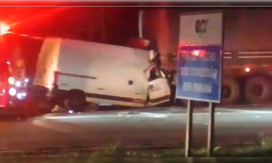 Uma mulher ficou gravemente ferida depois de ficar presa às ferragens em um acidente envolvendo uma van e um caminhão bitrem, na noite desta quarta-feira (8), no km 202 da BR-376, em Mandaguari, região Norte do Paraná. O caso aconteceu no sentido Marialva/Londrina, perto da praça de pedágio.