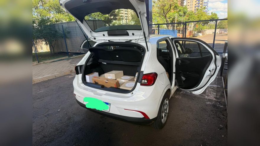 O acompanhamento levou os policiais até uma residência, onde foi localizado um veículo carregado com diversos eletrônicos provenientes do exterior, sem a devida comprovação fiscal.