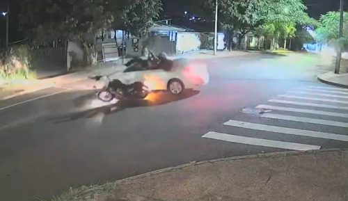 Um acidente de trânsito terminou em tragédia na noite desta quinta-feira (07) em Cascavel. Um motociclista perdeu a vida após uma colisão registrada por câmeras de monitoramento na Rua Ipanema, no Bairro Brasília.