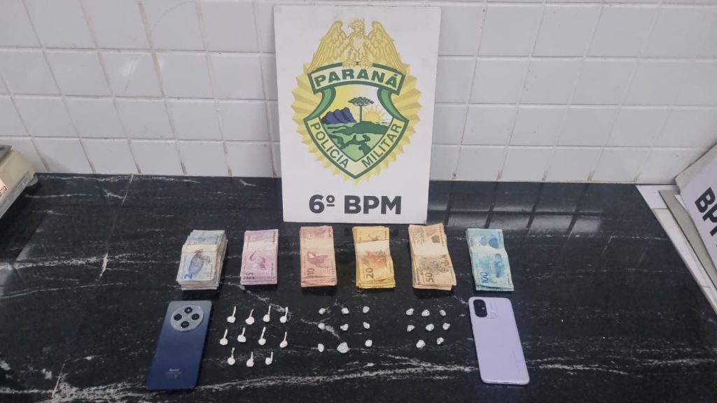 Segundo informado, a equipe do Pelotão de Choque abordou o adolescente na rua e procedeu com a abordagem a mulher em uma residência na mesma rua. Na casa os policiais encontraram R$ 2.850,00 em dinheiro, 8 gramas de crack, além de 5 gramas de cocaína e dois celulares.