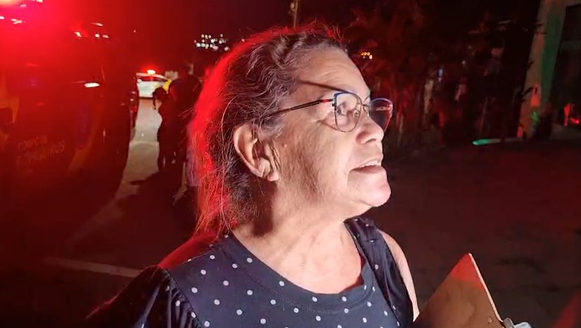 “Aqui tá perigoso, tá perigoso, atravessar com as crianças, eles quase atropelam, esse dia quase atropelou meus dois netos, que pararam um aqui pra lá e outro lá pra cá, aí eu olhei e não vi ninguém, fui atravessar, a moto atravessa do lado e vem doido. Tem que ter um quebra-mola aqui, não tem? Tem que ter um quebra-mola, alguma coisa que resolvesse o quanto antes. Eu tô fazendo um abaixo-assinado, vou chamar a reportagem pra vir aqui no horário das crianças, ir pra escola e sair, porque não dá mais pra aguentar, gente”.
