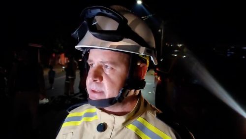 De acordo com ele, a ocorrência foi registrada após um chamado via telefone 193. No local, os socorristas encontraram duas vítimas: o condutor da moto e uma mulher de 59 anos que foi atropelada.