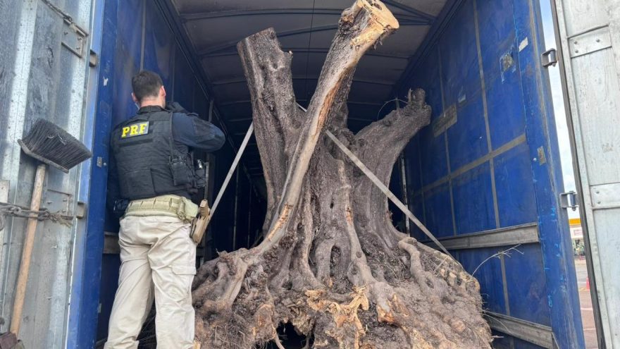 Durante a abordagem, o condutor da carreta afirmou que transportava plantas, mas não soube especificar a espécie e nem apresentou a documentação fiscal obrigatória. Ao vistoriarem o compartimento de carga, os policiais localizaram as árvores de grande porte, com troncos retorcidos e características típicas de exemplares centenários.