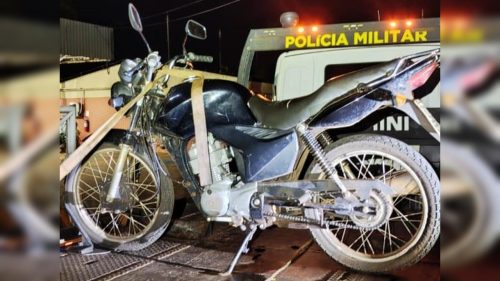 Além disso, a viseira do capacete do condutor possuía película escura, o que é proibido durante o período noturno. Diante das irregularidades, a motocicleta foi removida ao pátio do DETRAN.