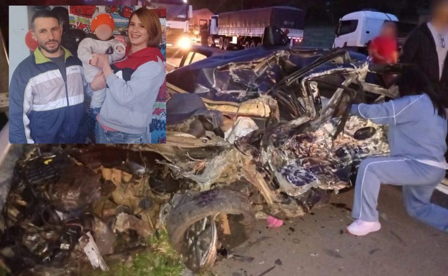 O acidente aconteceu no km 201,9 da BR-116, sentido São Paulo, envolvendo um Renault Clio, com placas de Curitibanos, e uma carreta Scania de Nova Prata (RS), que transportava produto perigoso. No carro estavam o pai, identificado como Felipe Mello Ribeiro, de 40 anos, a esposa Fabiele Kauana Lins, de 24, e o filho do casal, H.F.L.R., de apenas 4 anos. Os três morreram ainda no local, antes da chegada do socorro.