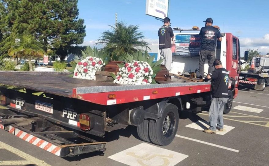 A imagem do caixão sobre o caminhão guincho, seguido por uma carreata de amigos, chamou a atenção de quem passava pela Avenida Comendador Franco. A Polícia Rodoviária Federal (PRF) fez a escolta do cortejo até o cemitério. “Foi uma homenagem que a gente fez ao nosso amigo, que era um homem trabalhador, parceiro nosso. Pode ter certeza que todo mundo vai sentir a falta dele”, disse Sandro Silva, colega de Aurélio.