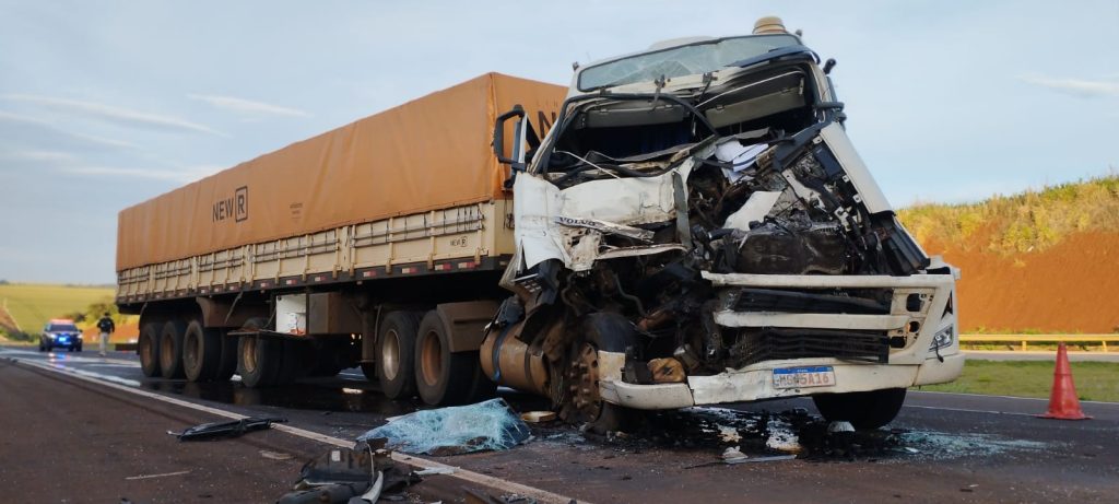 Caminhão fica destruído após forte colisão na BR-163, em Cascavel
