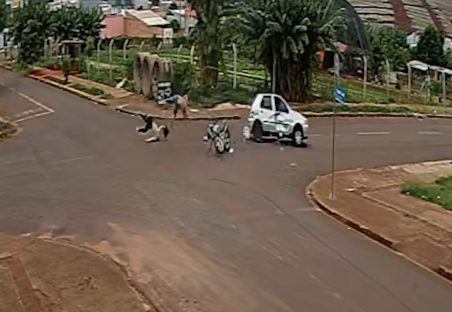 Câmera registra violenta colisão entre carro e moto no Cascavel Velho
