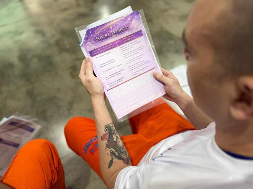 A professora detalhou ainda que o projeto aborda conceitos práticos, como o chamado “número da paz”, relacionado à estabilidade financeira individual, além da elaboração de um “plano de voo”, que orienta os primeiros passos após a saída da unidade: “Eles saem daqui com um planejamento concreto: o que fazer no primeiro dia, na primeira semana, no primeiro mês e no primeiro ano em liberdade. Trabalhamos também sonhos e objetivos, porque um indivíduo sem perspectiva acaba se perdendo. Quando ele visualiza metas e entende caminhos, as chances de reincidência diminuem significativamente”, continuou.