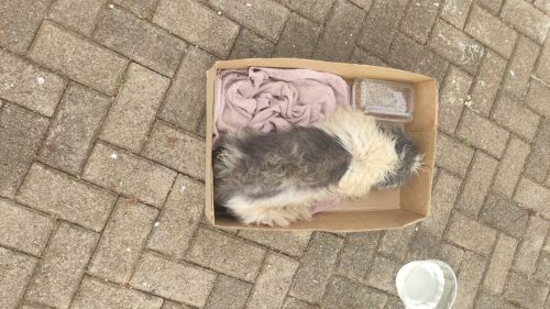 Cena revoltante: cachorro é encontrado ferido e abandonado dentro de caixa em Cascavel
