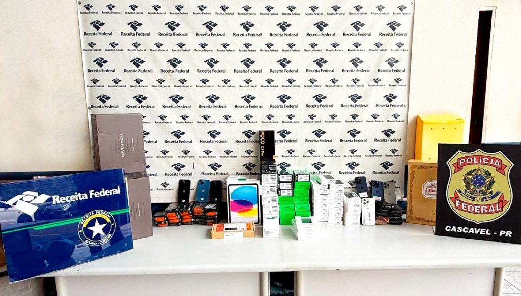 Em outra ação, um veículo também procedente de Foz do Iguaçu/PR e com destino a Cascavel/PR foi identificado com compartimento oculto preparado para o transporte irregular de mercadorias. Posteriormente, em uma fiscalização minuciosa no veículo, no pátio da Receita Federal, foram encontrados diversos aparelhos celulares, com valor estimado superior a R$ 200 mil.
