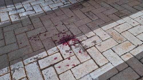 O ferimento sangrou bastante deixando várias marcas de sangue espalhadas pela calçada.