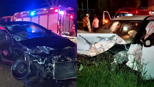 Um acidente de trânsito envolvendo um Chevrolet Onix, um Nissan Kicks que operava como táxi e um ônibus foi registrado na madrugada deste sábado (18), na BR-369, no km 502, em Cascavel.