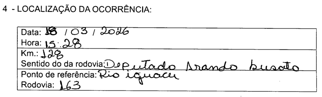 Na petição inicial, o fato é descrito como ocorrido em 24 de março de 2026. Já no formulário administrativo juntado aos autos, o preenchimento manuscrito sugere outra data, embora o documento digitalizado não esteja completamente nítido.